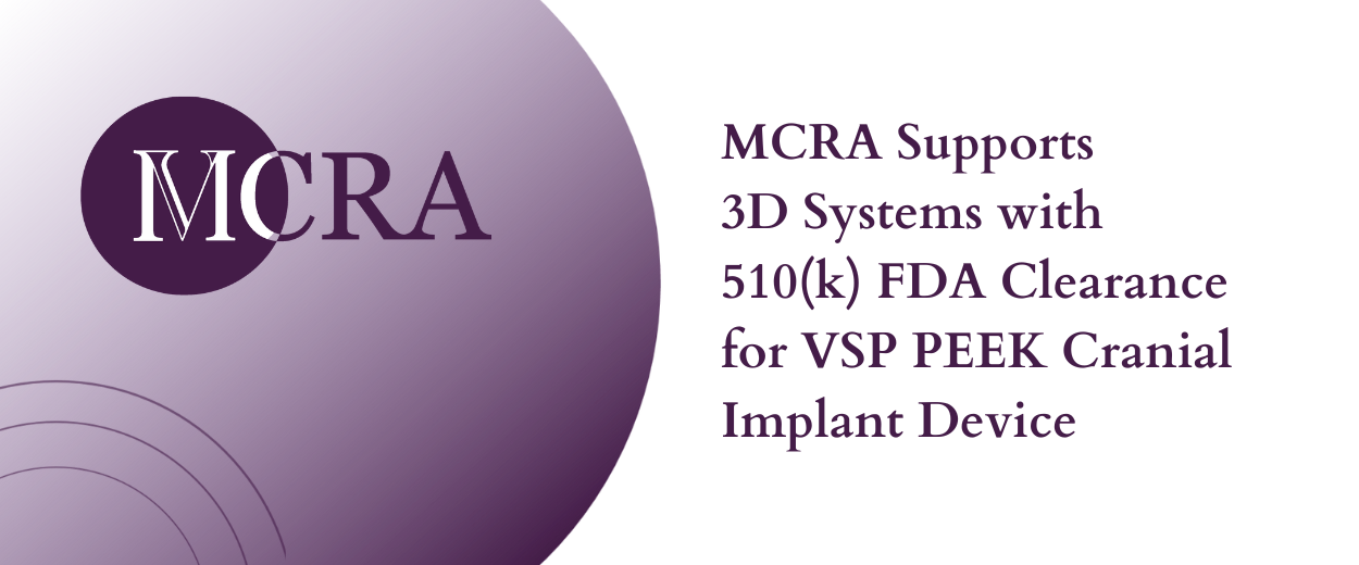 Ashley Dawson, PhD, Director, Regulatory Affairs at 3D Systems said, “This achievement reflects our commitment to advancing patient care through innovative solutions. Our successful partnership with MCRA was crucial in navigating the regulatory process, particularly with their expert guidance on biocompatibility. Working with MCRA has been a highly professional and productive experience, and their support was instrumental in achieving this important milestone.”